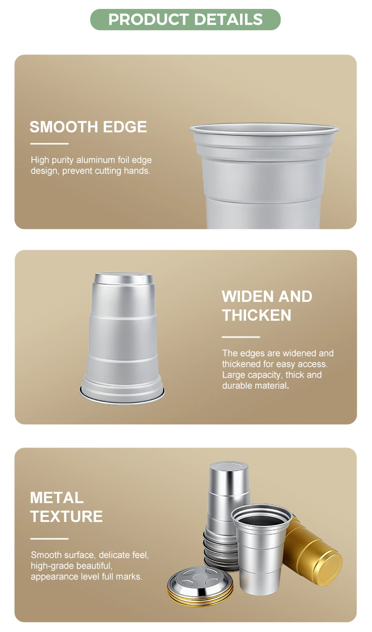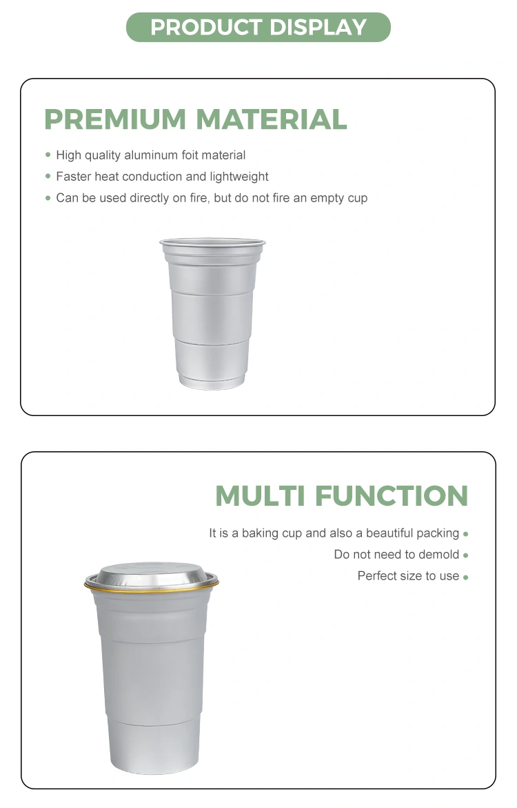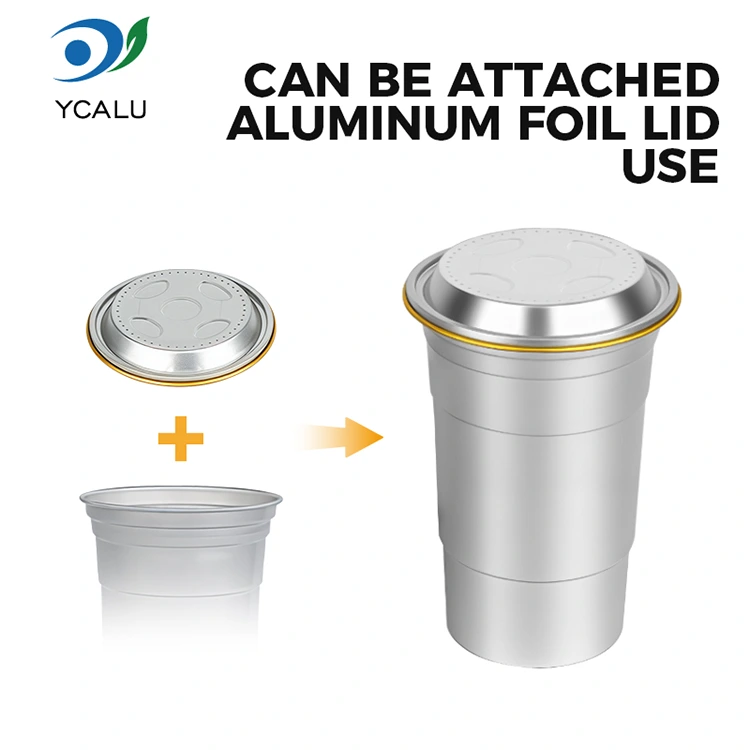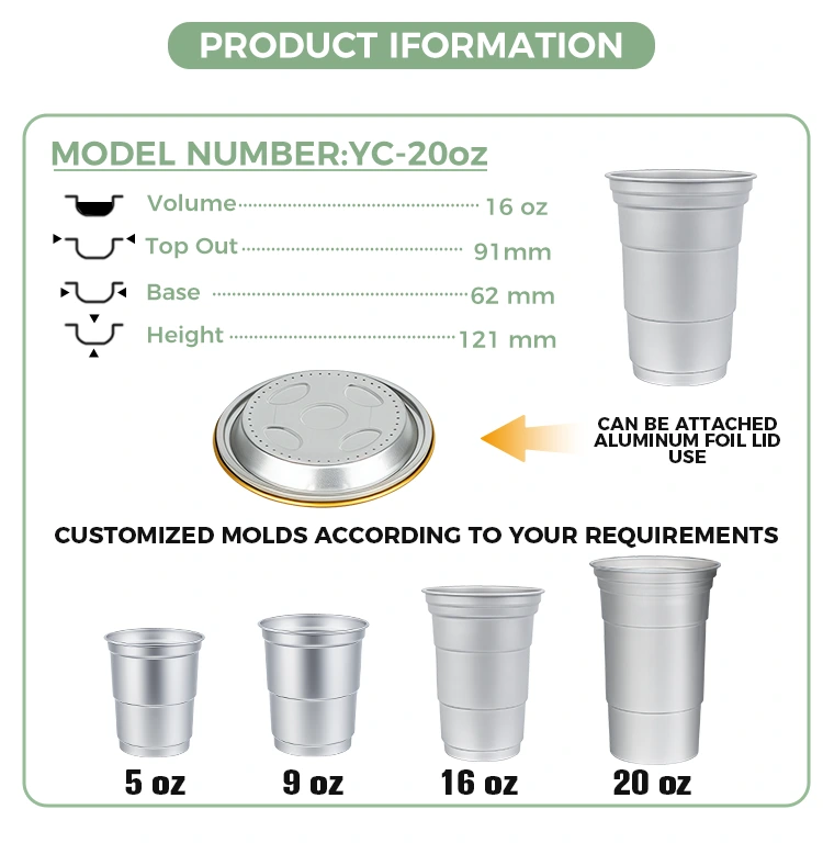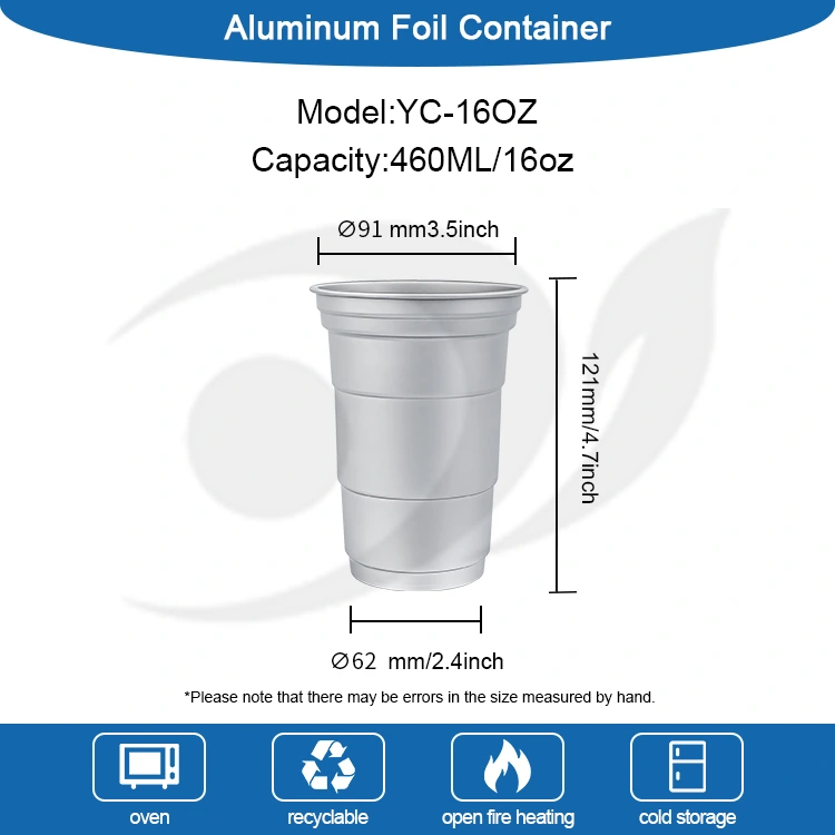 Không giống như các loại hộp đựng thông thường, cốc uống nước bằng giấy nhôm tùy chỉnh dùng một lần Yunchu 16oz được thiết kế đặc biệt để cung cấp giải pháp đóng gói cho các thương hiệu trong các tình huống cụ thể. Với kích thước nhỏ gọn (460 ml), Cốc uống nước bằng nhôm tùy chỉnh 16oz dùng một lần có thể tùy chỉnh này đáp ứng thói quen tiêu dùng đồ uống hòa tan dùng một lần. Chiếc cốc dùng một lần bằng giấy nhôm dùng một lần tùy chỉnh 16oz này đặc biệt thích hợp cho các hoạt động mang đi, chợ hoặc cắm trại, ngoài các chức năng thực tế của nó. Về cơ bản, nó có thể giúp nâng cao giá trị thương hiệu.