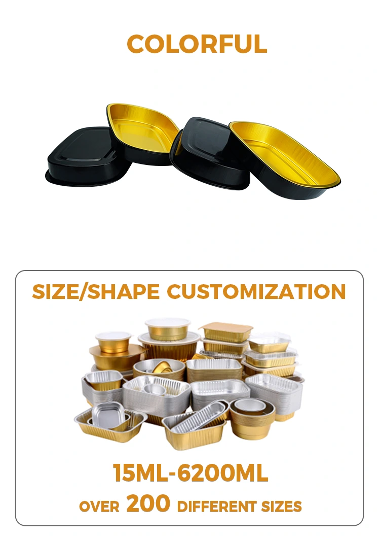 • Vật chứa giấy nhôm màu vàng màu đen dùng một lầnVật chứa giấy nhôm màu vàng màu đen dùng một lần