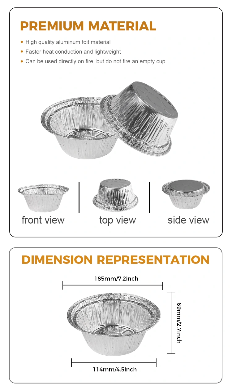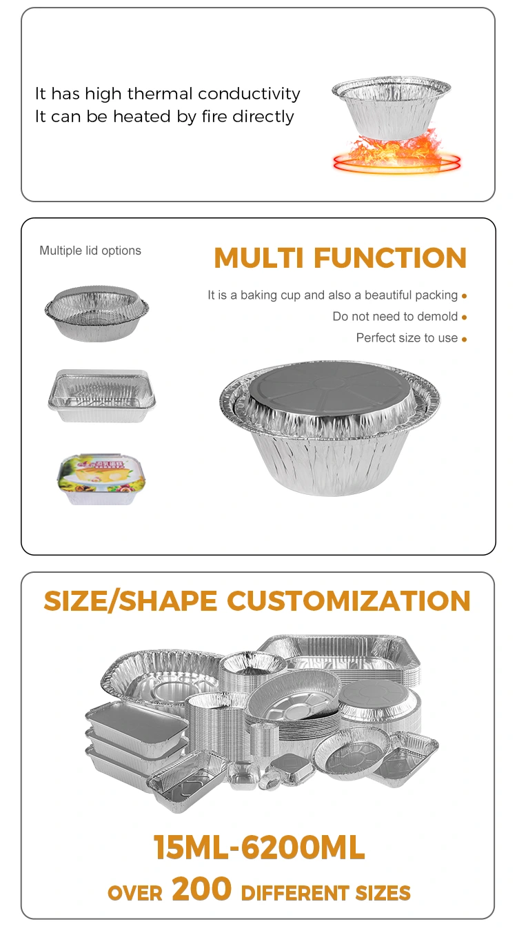 Hộp đựng lá bạc cho Yunchu Aluminum Foil Gratin Takeaway có thiết kế độc đáo, nhẹ và dễ sử dụng, chỉ nặng 9,9 gram, giúp dễ dàng xếp và lưu trữ, tiết kiệm không gian và thời gian đặt. Sản phẩm được sản xuất bằng quy trình tường ánh sáng tiên tiến với bề mặt mịn và phẳng, làm cho nó trở nên lý tưởng để ghi nhãn và quét công việc sau khi chế biến thực phẩm trong các siêu thị lớn. Khả năng rộng rãi của nó là đủ để chứa nhiều loại thực phẩm và đồ ăn nhẹ hàng ngày, đáp ứng nhu cầu sử dụng đa dạng. Là một sản phẩm dùng một lần, không cần phải làm sạch nó, giảm đáng kể chi phí lao động. Ngoài ra, sản phẩm được trang bị nắp nhôm PET và màng làm nóng bằng nhôm, có rò rỉ dầu và hiệu suất chống thấm nước tuyệt vời, và có thể duy trì sự ổn định và biến dạng ở nhiệt độ cao, do đó cải thiện hiệu ứng bảo quản nhiệt và nhiệt của thực phẩm, đặc biệt là khi niêm phong và vận chuyển.