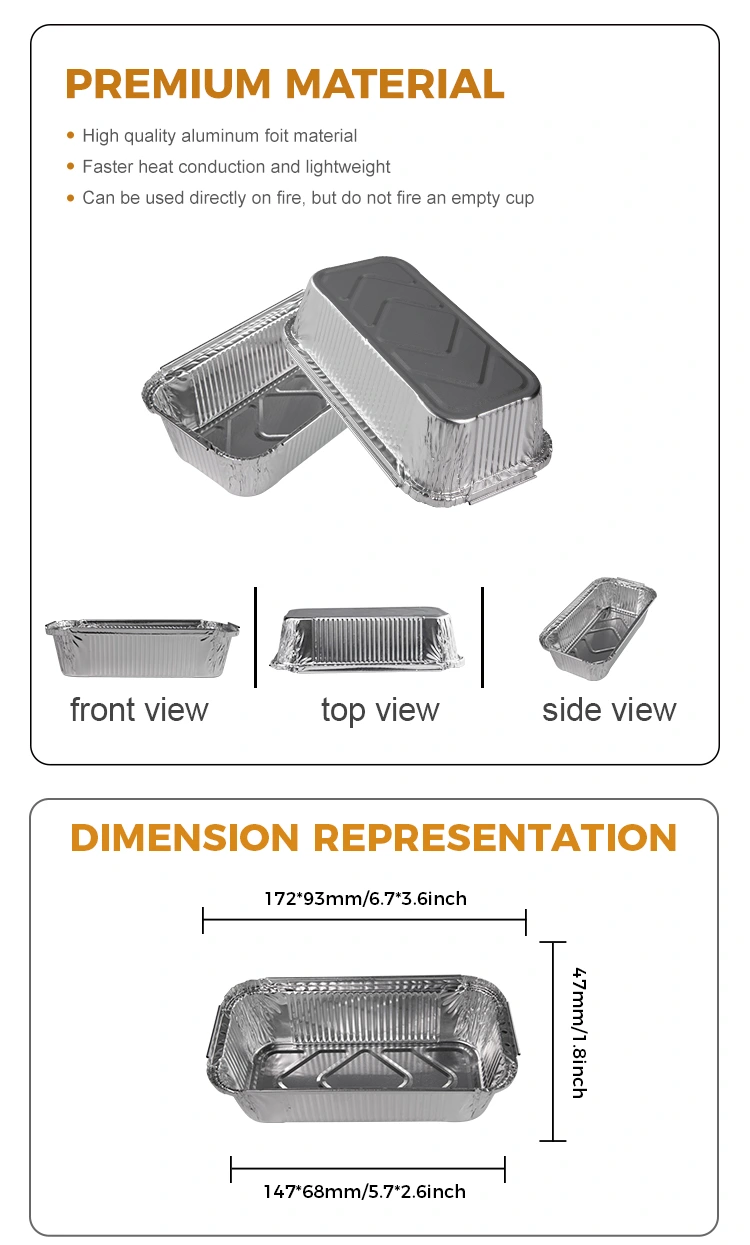 • Vật chứa giấy nhôm nướng hình chữ nhật dùng một lầnVật chứa giấy nhôm nướng hình chữ nhật dùng một lần