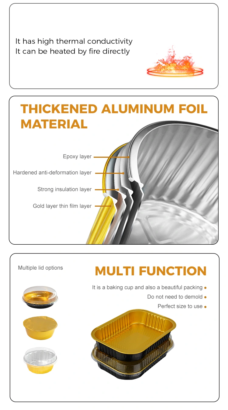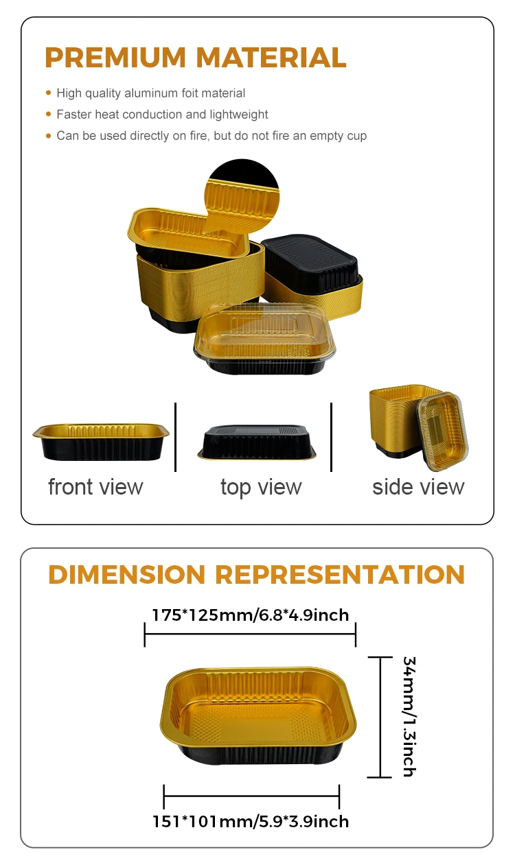 Hộp đựng bằng nhôm có vách nhẹ mang đi phục vụ đồ ăn hình chữ nhật dùng một lần của nhà cung cấp lá nhôm Yunchu được làm bằng loại thực phẩm. Chúng đã được xử lý và sàng lọc nghiêm ngặt và không có mùi đặc biệt. Toàn bộ quá trình sản xuất được hoàn thành trong xưởng sạch sẽ, không bụi bẩn, không có bất kỳ chất phụ gia độc hại nào. Cơm, thịt, súp… cũng có thể tiếp xúc trực tiếp. Hộp đựng bằng giấy nhôm này đã đạt chứng nhận cấp thực phẩm FD A của Hoa Kỳ, tuân thủ nghiêm ngặt các tiêu chuẩn của FDA. Sau khi thử nghiệm chuyên nghiệp, lượng nhôm di chuyển thấp hơn nhiều so với giới hạn quy định và thử nghiệm đạt tiêu chuẩn. Chúng tôi đã có được một báo cáo thử nghiệm chính thức. Nó không chỉ có thể được sử dụng trong phục vụ ăn uống trong nước mà còn đáp ứng đầy đủ các yêu cầu xuất khẩu ra nước ngoài. Bảo đảm kép, cho dù đó là chuỗi cửa hàng thức ăn nhanh, ẩm thực tư nhân hay cửa hàng bán mang đi xuyên biên giới, nó đều có thể được sử dụng. Nó đáng tin cậy và có thể dễ dàng chịu được sự chênh lệch nhiệt độ khắc nghiệt từ -20°C đến 250°C. Từ làm lạnh tủ lạnh và bảo quản đông lạnh đến hâm nóng bằng lò vi sóng, nướng trong lò và thậm chí làm nóng bằng ngọn lửa trần (cần có dụng cụ cách nhiệt), nó có thể được sử dụng để đóng gói súp nóng và các món ăn nóng để mang đi. Ngay cả khi được giữ ấm trong thời gian dài, hộp đựng sẽ không bị mềm hay biến dạng, cũng không bị tan chảy hoặc tạo ra các loại khí độc hại; Sau khi người tiêu dùng nhận được thực phẩm, họ không cần thay hộp đựng mà cho trực tiếp vào lò vi sóng để hâm nóng. Hơn nữa, nó dẫn nhiệt đều nên sẽ không xảy ra hiện tượng quá nhiệt cục bộ hoặc thức ăn bị kẹt trong quá trình hâm nóng. Nó có thể giữ lại hương vị của thực phẩm ở mức độ lớn nhất. Dù là cơm nướng, món hầm, thịt nướng hay bán thành phẩm nướng đều phù hợp để đóng gói.