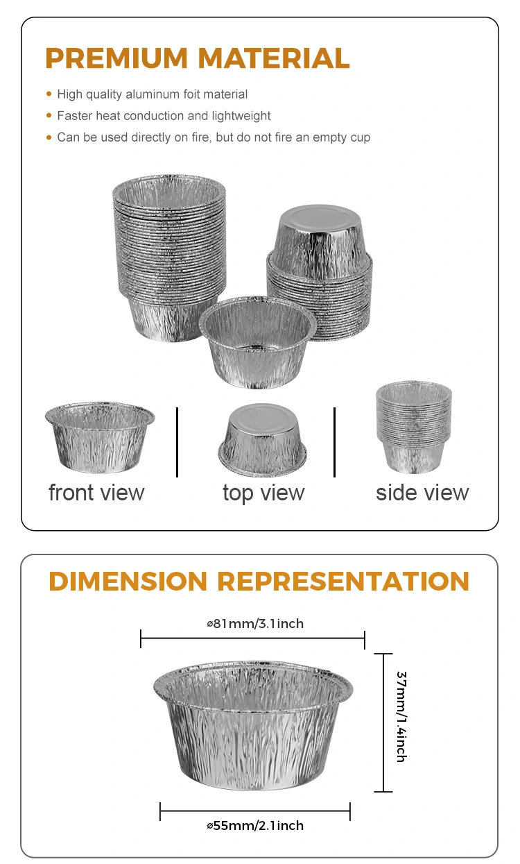 Khay đựng bánh tròn dùng một lần Hộp đựng giấy nhôm bạc của nhà sản xuất giấy nhôm Yunchu được làm bằng lá nhôm cấp thực phẩm, đủ dày để đảm bảo độ bền và khả năng chống ăn mòn của thành ngoài, đồng thời có thể tiếp xúc trực tiếp và an toàn với thực phẩm. Sản phẩm được làm mịn xung quanh đáy và thành trong, giúp dễ lấy ra khỏi khuôn hơn trong quá trình nướng hoặc hấp. Thiết kế các nếp gấp xung quanh làm tăng độ ma sát của thành ngoài, giúp dễ mặc hơn. Ngoài ra, sản phẩm này còn chịu được nhiệt độ cao, dù cho vào lò nướng hay làm nóng trong lò vi sóng đều có thể truyền nhiệt đều để đảm bảo mọi ngóc ngách đều được làm nóng hoàn toàn. Thiết kế như vậy không chỉ có thể ngăn ngừa đáy bị cháy sớm mà còn giúp phân bổ nhiệt độ tổng thể cân bằng hơn, khiến đáy ít bị cháy hơn, đồng thời giữ cho kết cấu ổn định và không dễ bị biến dạng.