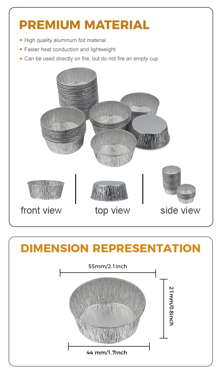 Hộp đựng giấy nhôm bạc nhúng tròn dành cho nồi chiên không khí nhúng tròn dùng một lần của Nhà cung cấp giấy nhôm Yunchu được làm bằng lá nhôm dày cấp thực phẩm. Nó an toàn, không có mùi và không có kết tủa có hại. Nó có thể tiếp xúc trực tiếp với tất cả các loại vật liệu nhúng. Hộp đựng giấy nhôm nhỏ này có thể xếp chồng lên nhau để tiết kiệm không gian, không bị biến dạng và không bị rò rỉ. Lá nhôm bạc có kết cấu đồng đều và tính dẫn nhiệt tuyệt vời. Nó có thể được sử dụng trong các nhà hàng, quán cà phê, họp mặt gia đình, v.v. Nó được sử dụng với đồ ăn nhẹ trong nồi chiên không khí, v.v. Ngay cả khi chứa nước sốt đặc và nước chấm nhiều dầu, nó sẽ không bị rò rỉ. Nó giữ cho mặt bàn và dụng cụ nhà bếp sạch sẽ và gọn gàng. Cách trình bày của giấy bạc rất đơn giản và đẹp mắt trong nhiều cảnh khác nhau. Vẻ ngoài màu bạc có thể phù hợp với nhiều đĩa ăn tối khác nhau.