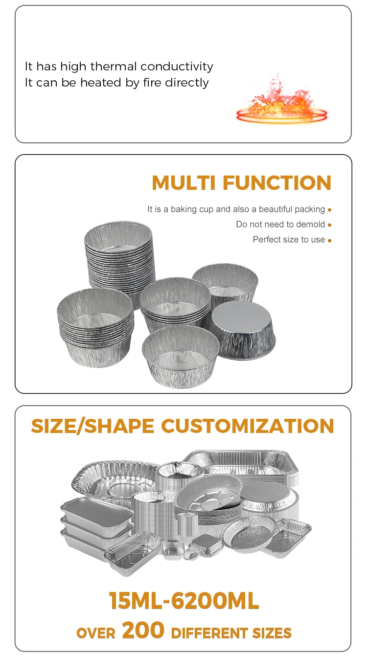 Hộp đựng giấy nhôm bạc nhúng tròn dành cho nồi chiên không khí nhúng tròn dùng một lần của Nhà cung cấp lá nhôm Yunchu được thiết kế để dùng một lần, loại bỏ hoàn toàn công việc rửa bát tẻ nhạt sau bữa ăn, tiết kiệm thời gian và năng lượng; vật liệu lá nhôm có thể tái chế, thân thiện với môi trường và không gây gánh nặng, có tính đến sự tiện lợi và ý tưởng xanh. Ngoại hình nhỏ gọn và tinh tế, ngăn chứa có thể xếp chồng lên nhau không chiếm diện tích, dễ dàng tiết kiệm không gian cất giữ trong bếp. Dù được sử dụng ở nhà hay ở doanh nghiệp, hộp đựng bằng nhôm tròn màu bạc dùng một lần này có thể giải quyết vấn đề bảo quản và sử dụng nước chấm bằng vật liệu chất lượng cao và thiết kế chu đáo, giúp mọi công việc nấu nướng và tụ tập trở nên an tâm và thoải mái hơn.