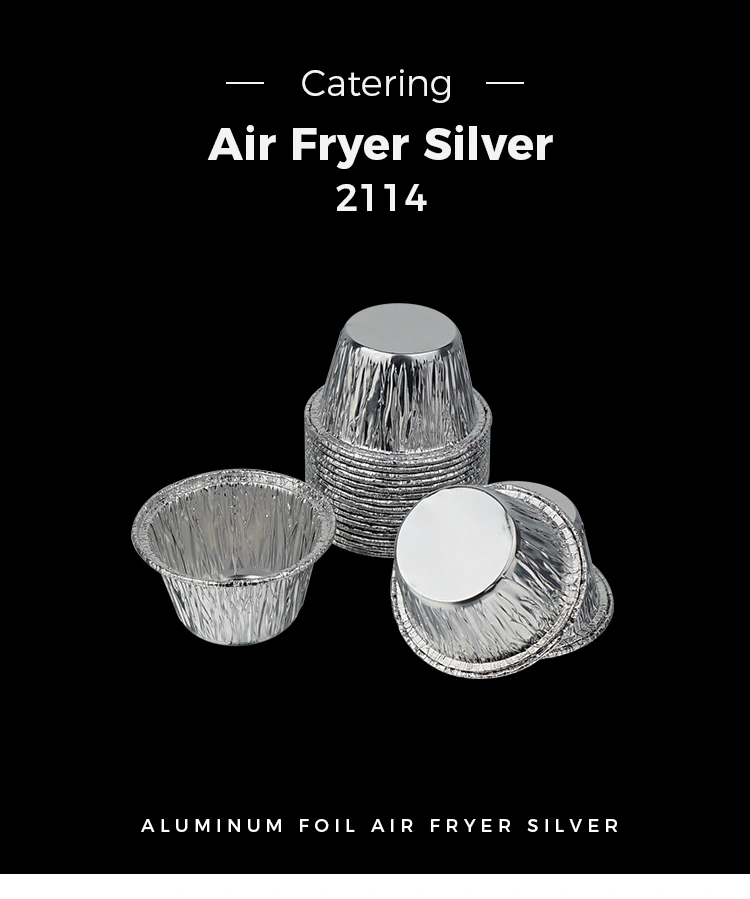 • Nồi chiên không khí dạng tròn nhỏ dùng một lần Hộp đựng thực phẩm bằng lá nhôm màu bạcNồi chiên không khí dạng tròn nhỏ dùng một lần Hộp đựng thực phẩm bằng lá nhôm màu bạc