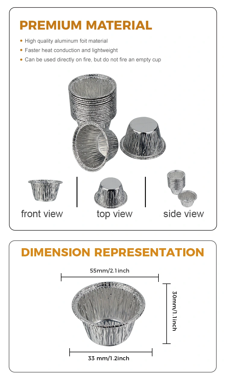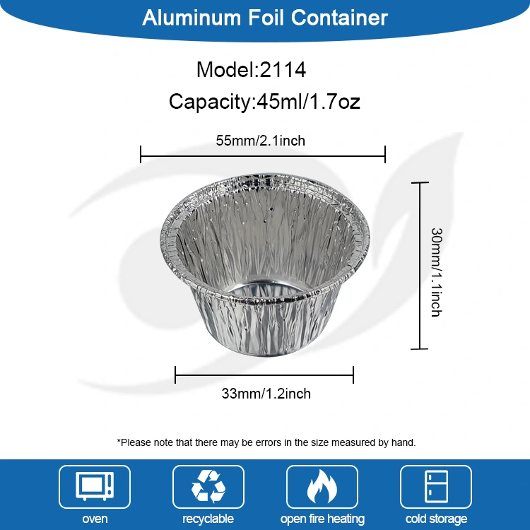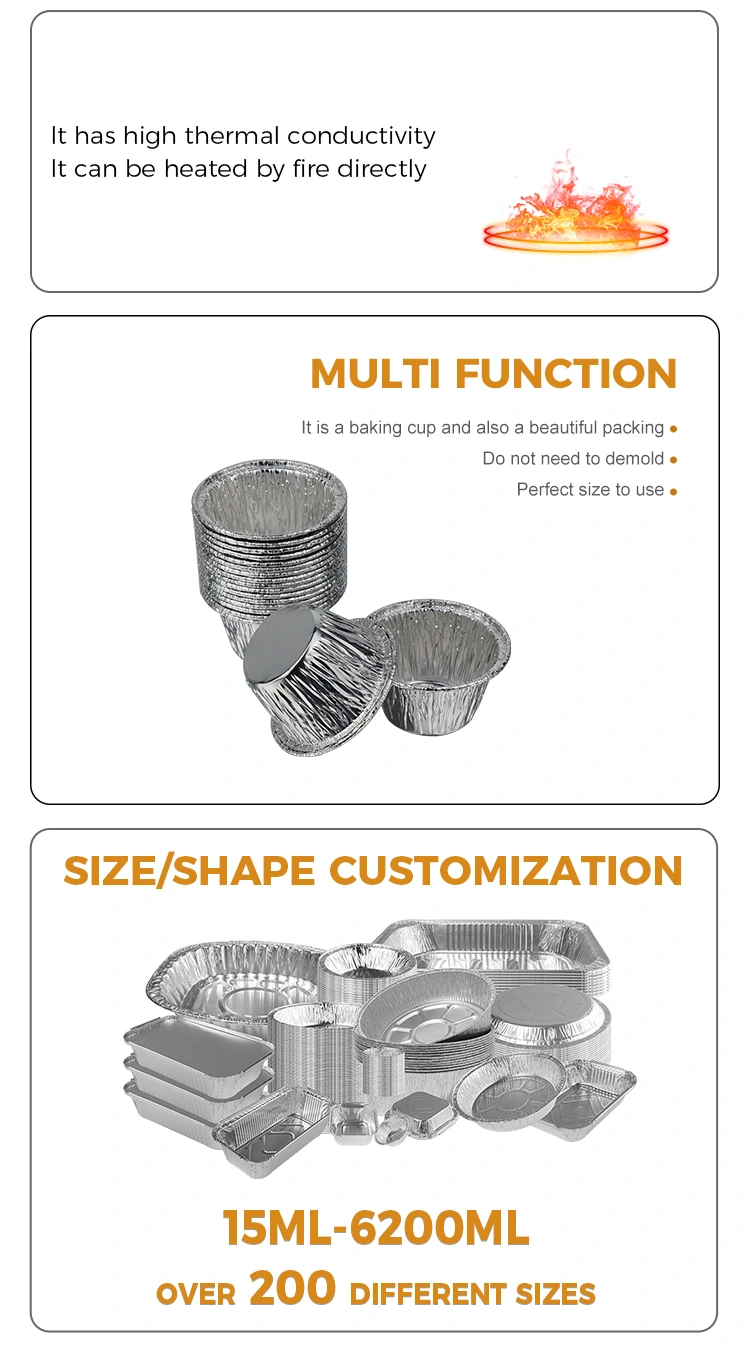Hộp đựng giấy nhôm bạc dành cho nồi chiên không khí làm bánh tròn nhỏ dùng một lần của Nhà sản xuất Lá nhôm Yunchu sử dụng lá nhôm cấp thực phẩm 8011-O, đã đạt chứng nhận an toàn khi tiếp xúc với thực phẩm của FDA Hoa Kỳ và tuân thủ các tiêu chuẩn an toàn vật liệu tiếp xúc với thực phẩm của EU SGS. Sau khi thử nghiệm chuyên nghiệp, nó không có mùi và không có dư lượng có hại. Nó có thể tiếp xúc trực tiếp với tất cả các loại thực phẩm. Nó không dễ bị biến dạng hoặc gãy. Nó có khả năng chống rò rỉ và chống dính hiệu quả. Nó có thể đựng trực tiếp các thành phần chất lỏng như bột bánh, nước bánh pudding, nước sốt, v.v. Thiết kế cạnh cuộn bên ngoài chống trầy xước, giảm nguy cơ trầy xước tay. Phạm vi chịu nhiệt độ từ -40oC đến 220oC và có thể thích ứng với nồi chiên không khí, lò nướng, nồi hấp và lò vi sóng (nhiệt độ trung bình thấp). Nó có thể được đặt trực tiếp vào nồi chiên không dầu để nướng bánh mini và bánh trứng, đồng thời cũng có thể dùng để làm nóng nguyên liệu đông lạnh trực tiếp sau khi rã đông, đáp ứng nhiều nhu cầu nấu nướng và nướng bánh khác nhau.