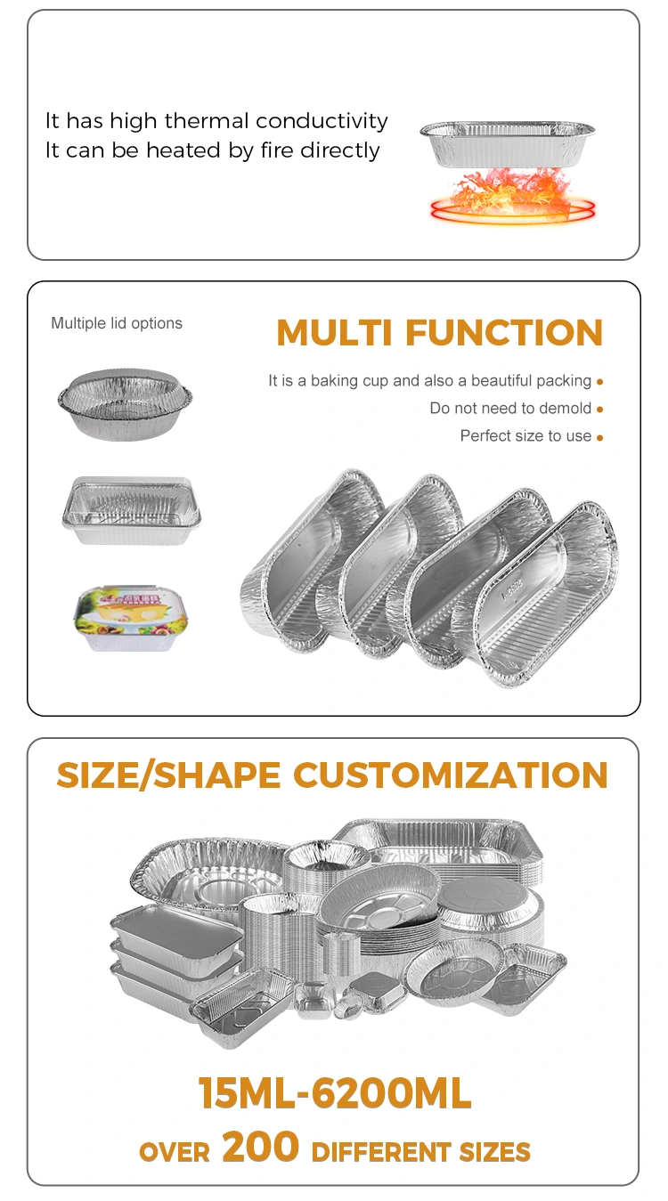 Các tính năng: Sức khỏe và thân thiện với môi trường, không sạch sẽ, phù hợp để làm các món ngon tại nhà và nướng, lý tưởng cho nhà và tiệm bánh. Vật liệu lá nhôm là an toàn và hợp vệ sinh, không cần phải được làm sạch, và rất phù hợp để sử dụng trong các loại thuốc chống chay không khí.