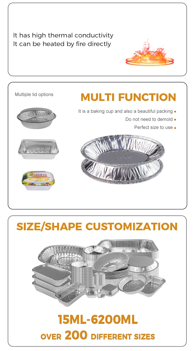 Các tính năng: Đúc một mảnh làm dày và chống nướng, áp dụng vật liệu giấy nhôm loại tiếp xúc thực phẩm, yên tâm để tiếp xúc với thực phẩm, không dễ biến dạng và không rò rỉ, độ dày mạnh, khả năng chống ăn mòn, kháng nhiệt độ cao.