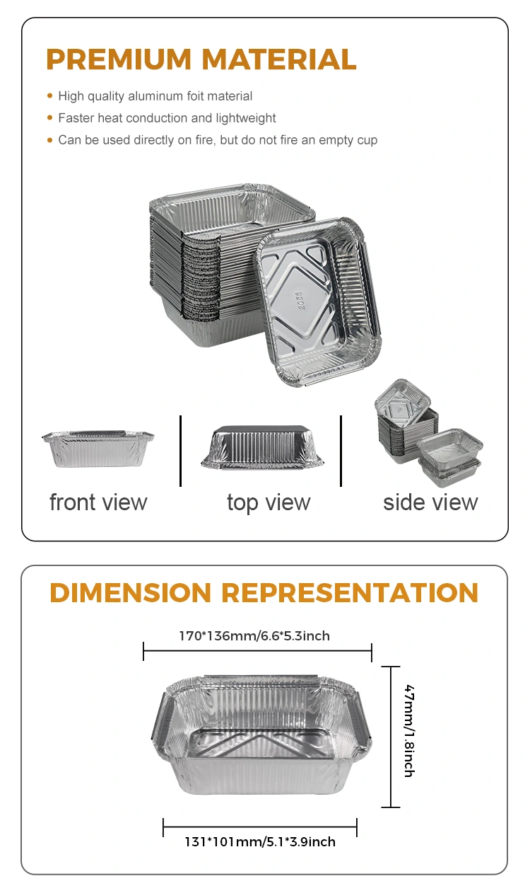 Ngoài các tính năng thực tế của nó, gratin hình chữ nhật của nhà cung cấp Yunchu 2056 còn được đóng gói các thùng chứa giấy nhôm bạc cũng tự hào có một khái niệm thiết kế hiện đại. Hình dạng tròn và vẻ ngoài bạc của nó mang lại cho nó một cái nhìn sành điệu, vượt qua phong cách thiết kế Cup bạc truyền thống. Để đáp ứng nhu cầu của các thương hiệu khác nhau, chúng tôi cung cấp nhiều tùy chọn màu tùy chỉnh, bao gồm vàng, vàng đen, đỏ và đen và cũng có thể cung cấp dịch vụ tùy chỉnh cho các màu, logo và mẫu đặc biệt (vui lòng tham khảo nhân viên dịch vụ khách hàng của chúng tôi để biết MOQ và thông số kỹ thuật cụ thể).