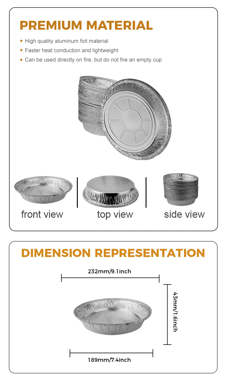 Yunchu aluminum foil supplier produces wholesale Round air fryer oven Silver Aluminum Foil Containers, silver aluminum foil food grade material certification, the material has been thickened, direct contact with food safety and peace of mind, can directly bake food, simple and convenient to use, as long as it is put in the air fryer or oven, etc., you can make food, evenly heated and roasted at high temperature, not afraid of high and low temperature -20 ° C ~ 250 ° C không thể được dán hoặc bị hỏng, chọn các vật liệu chất lượng cao dày, bảo vệ môi trường cấp thực phẩm và không có ô nhiễm, sử dụng nhiều hơn. Các hộp đựng bằng nhôm lò nướng bằng không khí không khí phù hợp cho các cảnh như nhà hàng, ăn uống căng tin, chuỗi cửa hàng, thực phẩm lạnh, takeaway, v.v ... Cho dù sử dụng bán buôn hay bán lẻ, chảo nướng này đã giúp bạn được bảo hiểm. Khay nướng có khả năng chịu tải và độ bền nhất định, và có thể duy trì hình dạng của nó ngay cả khi xếp chồng lên nhau, và không dễ biến dạng trong quá trình vận chuyển. Để tăng cường hơn nữa trải nghiệm người dùng, người dùng cũng có thể chọn sử dụng nó với nắp giấy nhôm và nắp thú cưng trong suốt hoàn toàn.