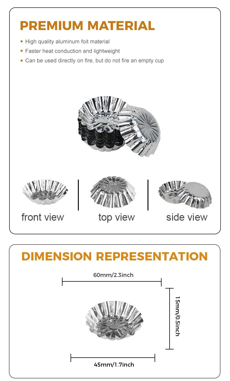 Nhà cung cấp bằng nhôm bằng nhôm trứng bánh tart nướng đồ chơi bằng Yunic Độ dẫn nhiệt mạnh, vật liệu lá nhôm không dễ biến dạng, chống thấm/chống dầu, độ dẫn nhiệt tốt, có thể được đặt vào nồi hấp, nồi chiên không khí, thịt nướng, v.v. Không dễ làm biến dạng, hấp lâu dài, nướng sẽ không biến dạng hoặc nứt, có lợi cho sự xuất hiện của sản phẩm để hoàn thành hiệu ứng.