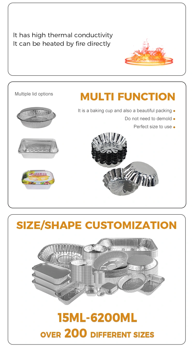 Nhà cung cấp bằng nhôm bằng nhôm, bánh tart nướng đồ chơi bằng bạc, để đáp ứng các hương vị khác nhau, một loạt các kích cỡ để lựa chọn, vật liệu giấy nhôm là an toàn và không độc hại Độ dẫn nhiệt mạnh, vật liệu lá nhôm không dễ biến dạng, chống thấm/chống dầu, độ dẫn nhiệt tốt, có thể được đặt vào nồi hấp, nồi chiên không khí, thịt nướng, v.v. Không dễ làm biến dạng, hấp lâu dài, nướng sẽ không biến dạng hoặc nứt, có lợi cho sự xuất hiện của sản phẩm để hoàn thành hiệu ứng.